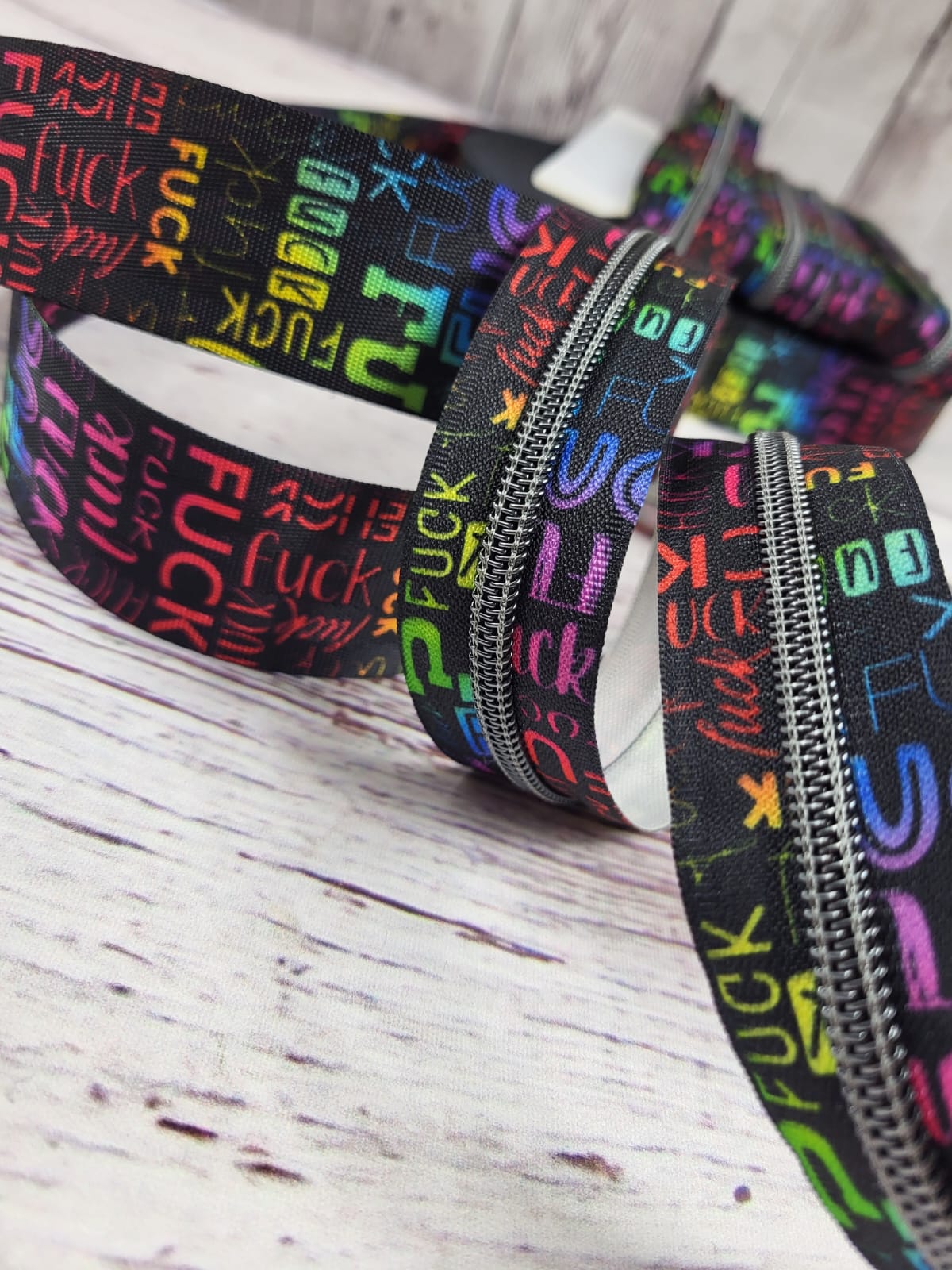 Nylon-Reißverschluss | endlos | Spirale 5mm | FUCK | schwarz/bunt