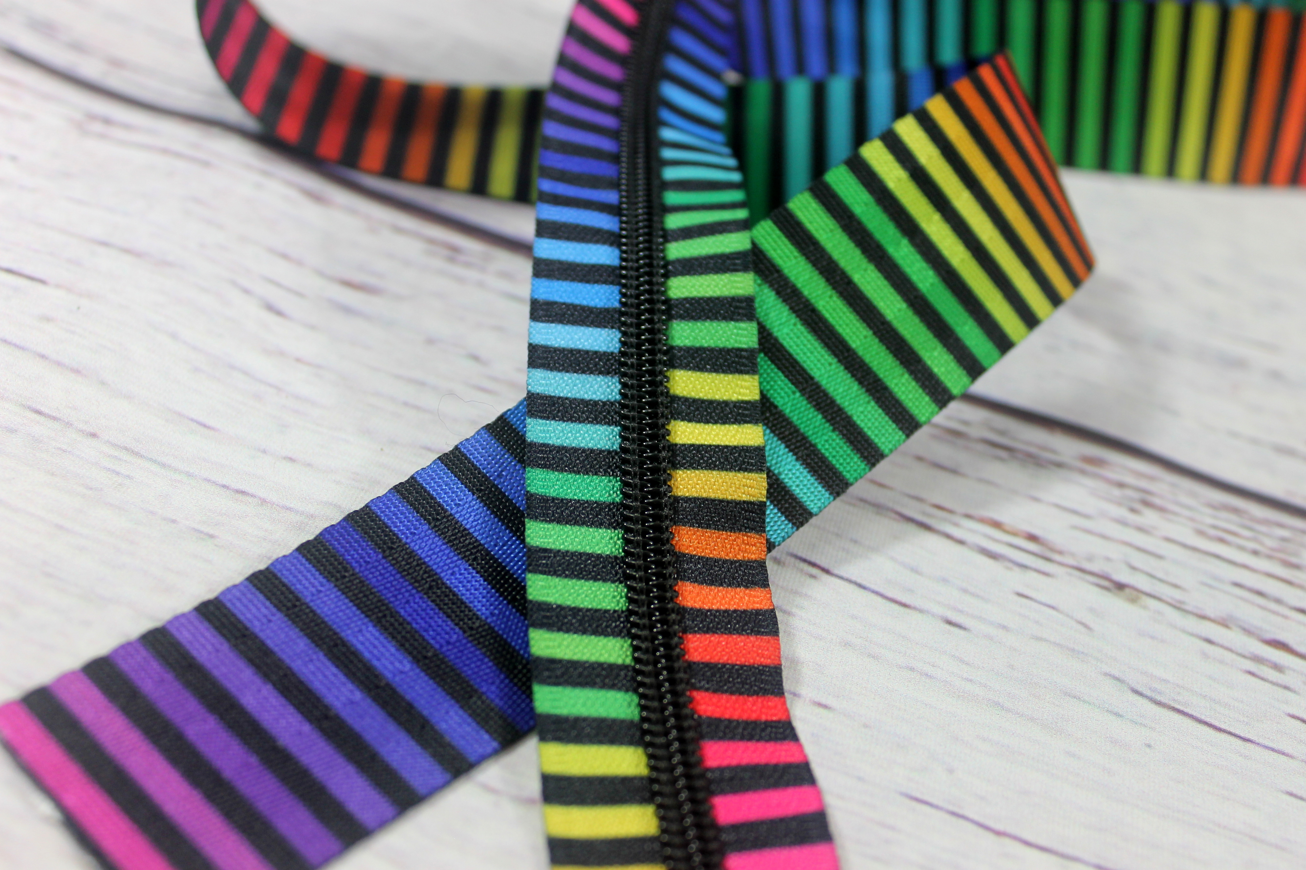Nylon-Reißverschluss | endlos | Spirale 5mm | rainbow stripes | schwarz
