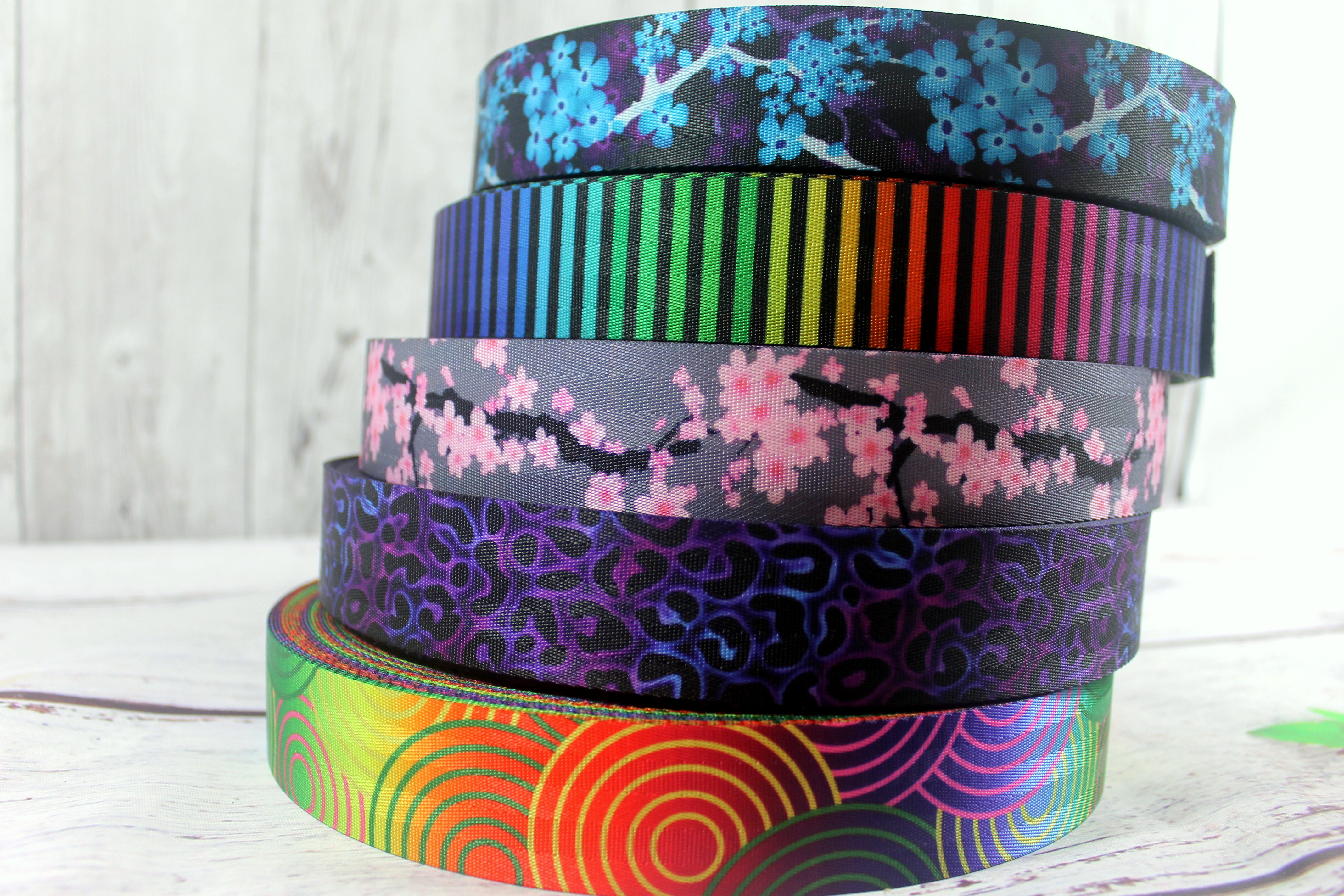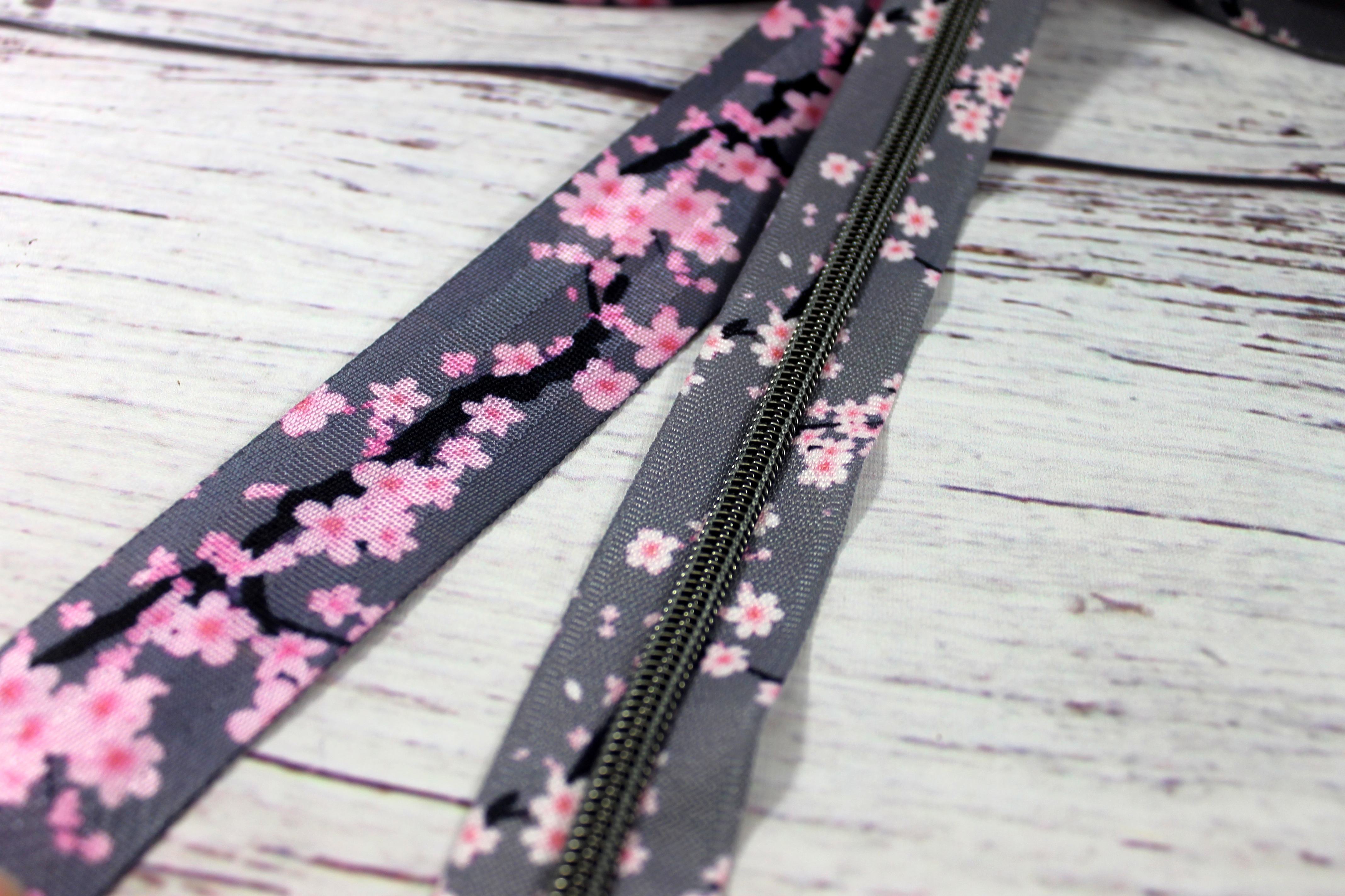 Gurtband | 40mm | beidseitig | Kirschblüten | grau