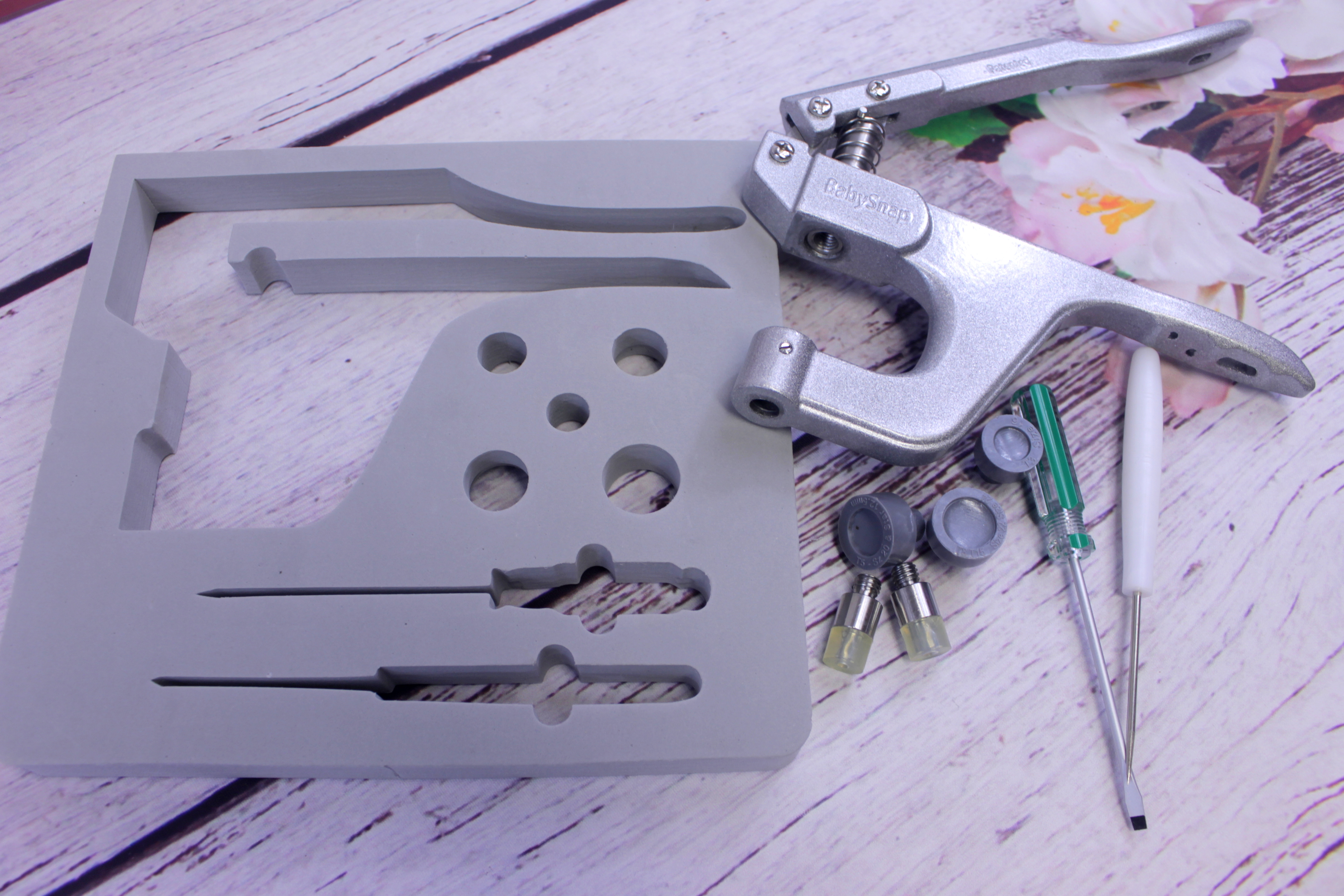 Tool zum Anbringen von Ösen mit der Multifunktionszange von Babysnap: Heavy Duty. Anleitung zur Handhabung der Zange gibt es hier. Material: Metall Größe: für 5mm Ösen der Marke Baby geeignet Deko nicht mit inbegriffen