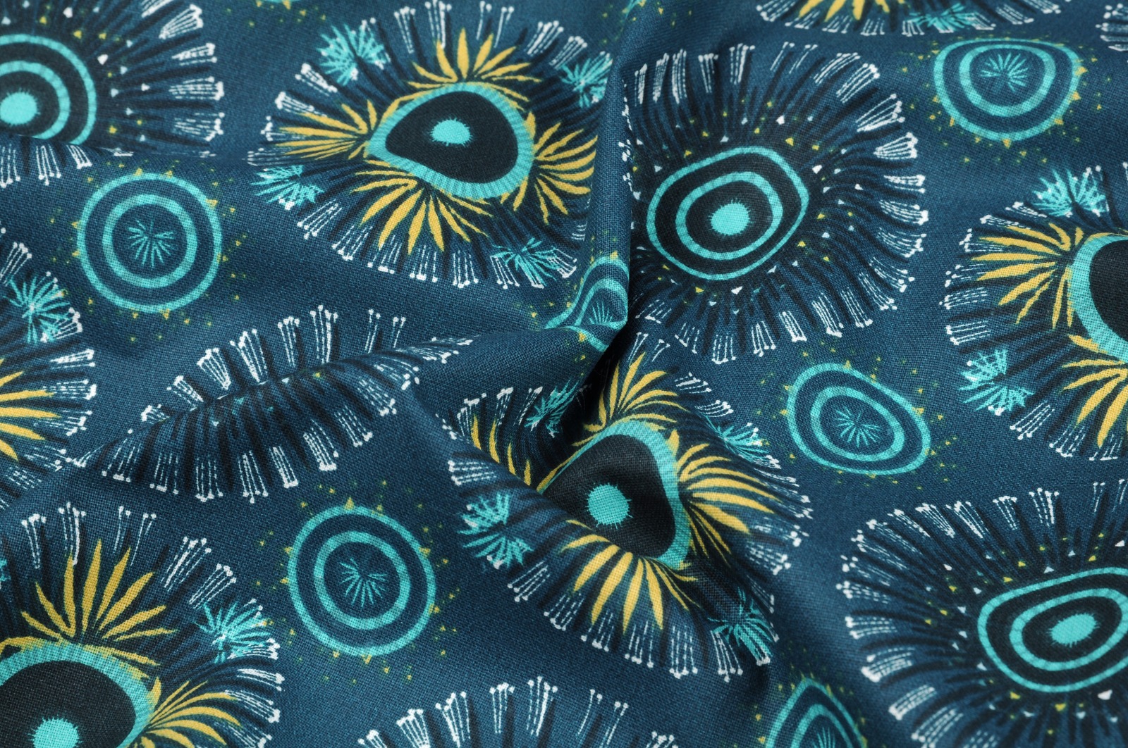 Produktinformationen "beschichtete Baumwolle / Wachstuchstück | round | petrol/bunt"
