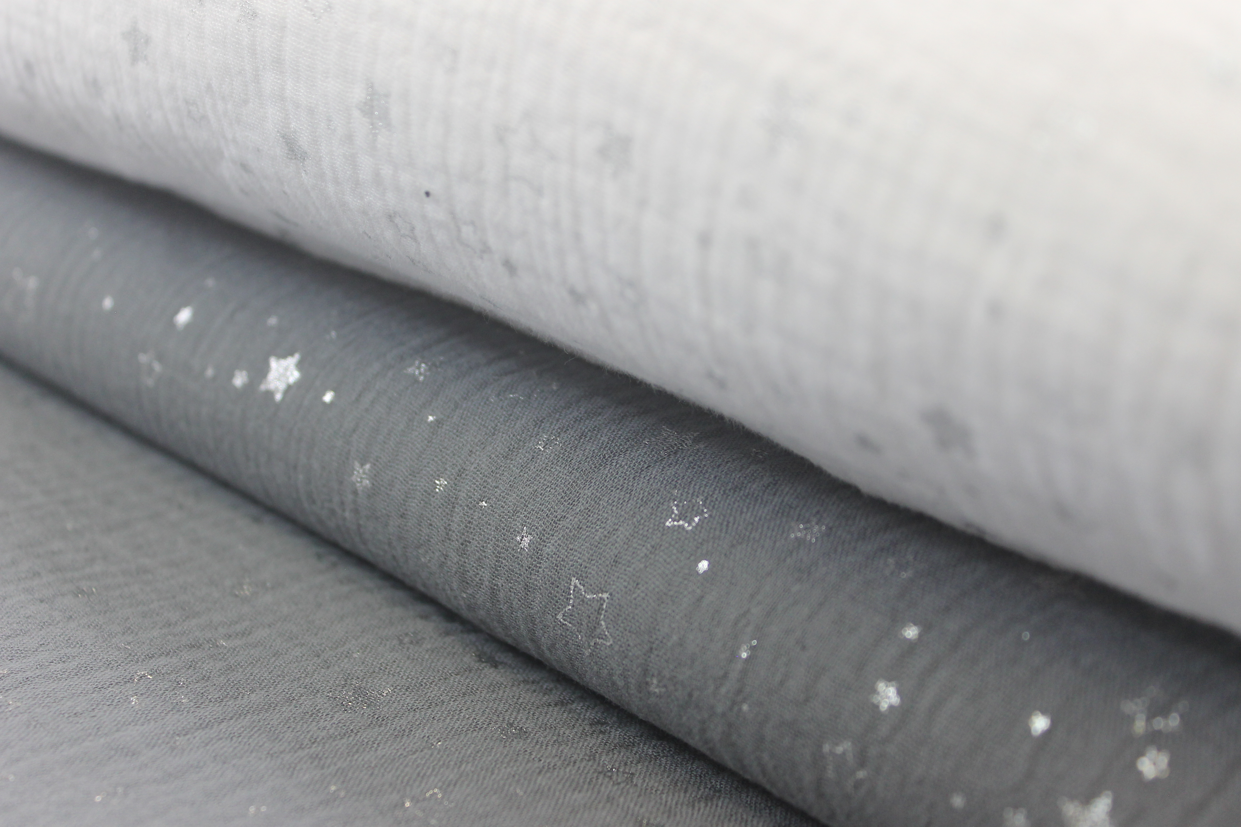 Baumwolle | double gauze / Musselin | silberne Sterne | weiss