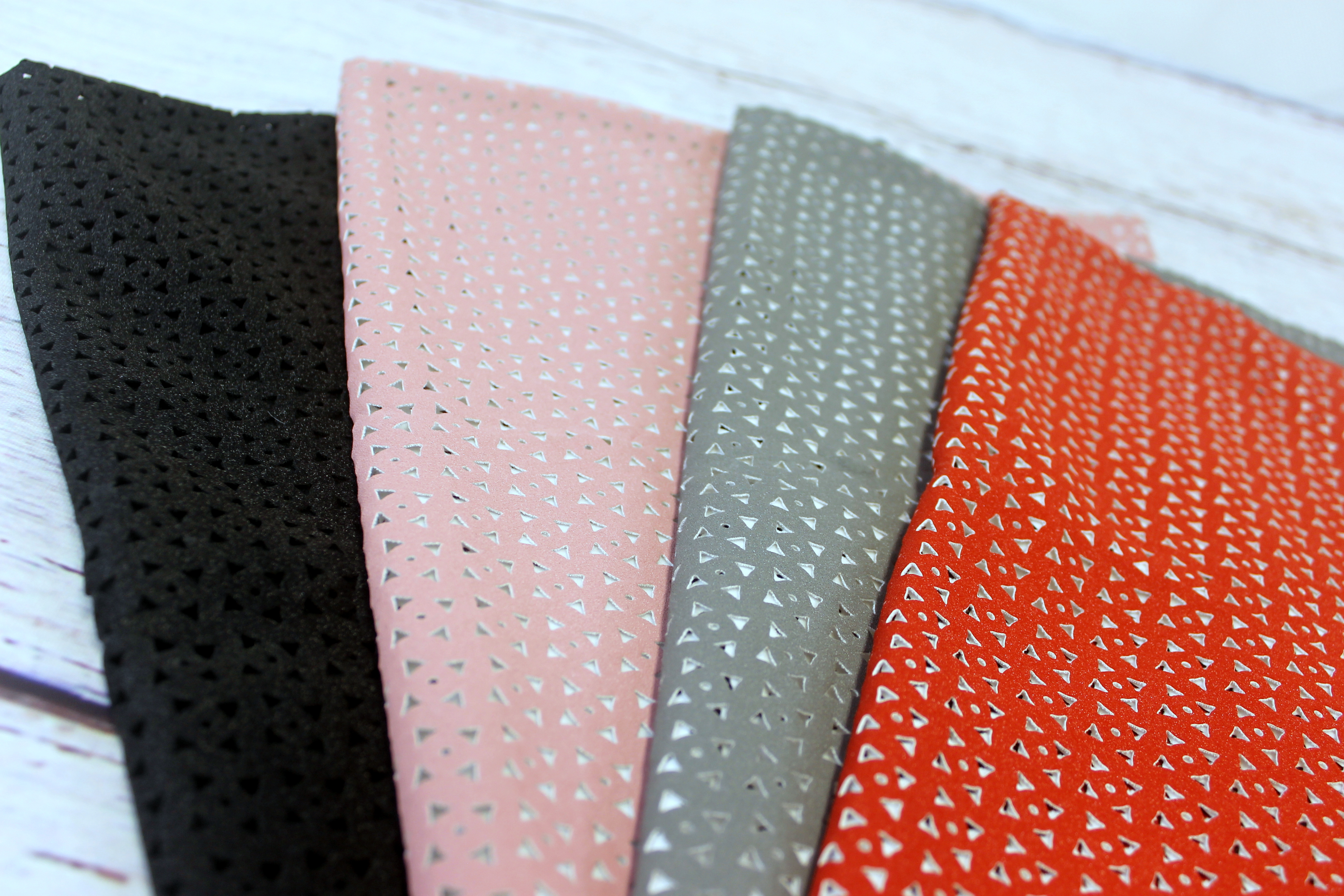 Super geeignet für zB. Taschen, Bezüge, Accessoires und durch die gestanzten Dreiecke ein besonderer Hingucker.