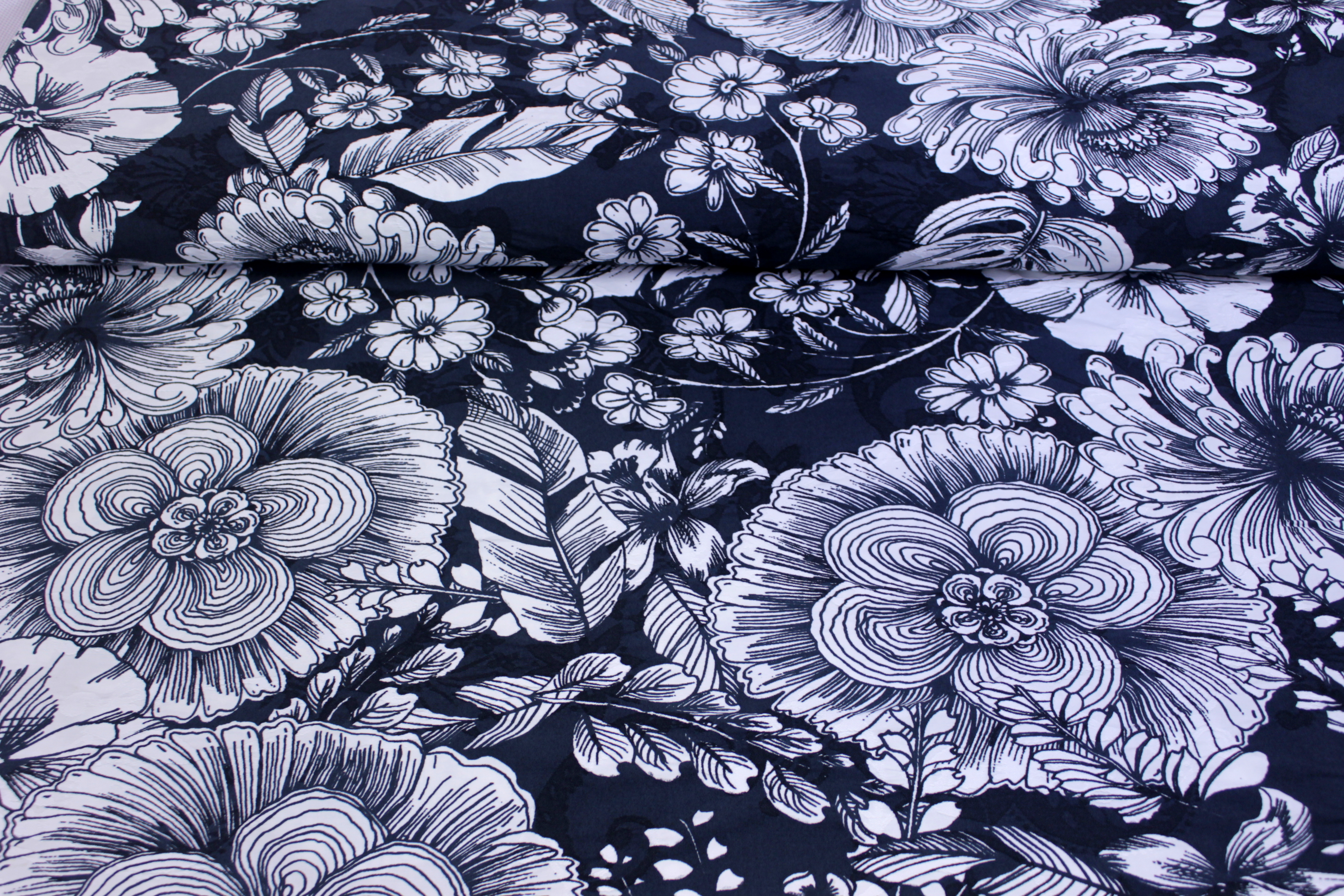 Produktinformationen "Viskose - Jaquard | bedruckt | schwarz/weiße Blumen | nachtblau"