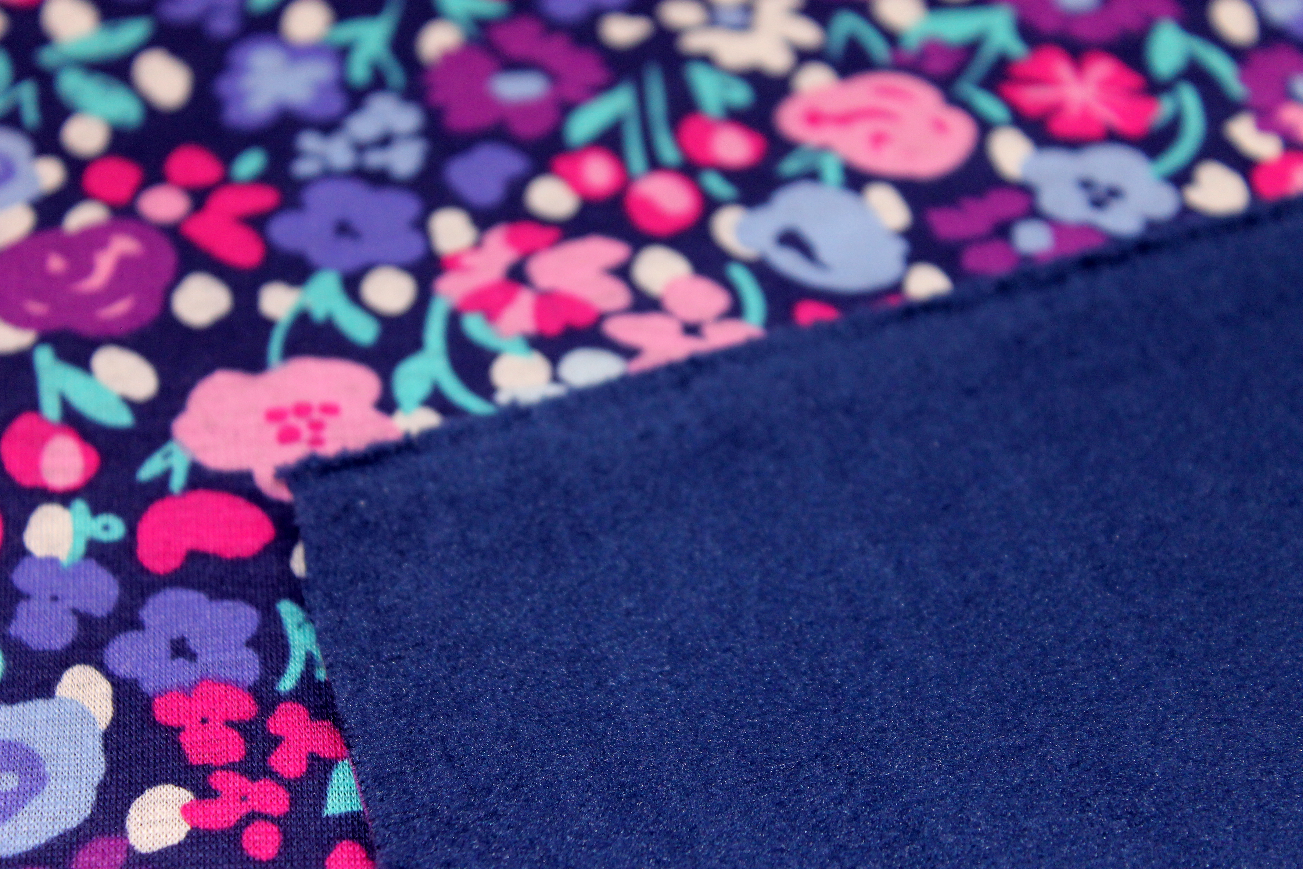 Produktinformationen "Alpenfleece | bedruckt | bunte Blumen | dunkelblau"