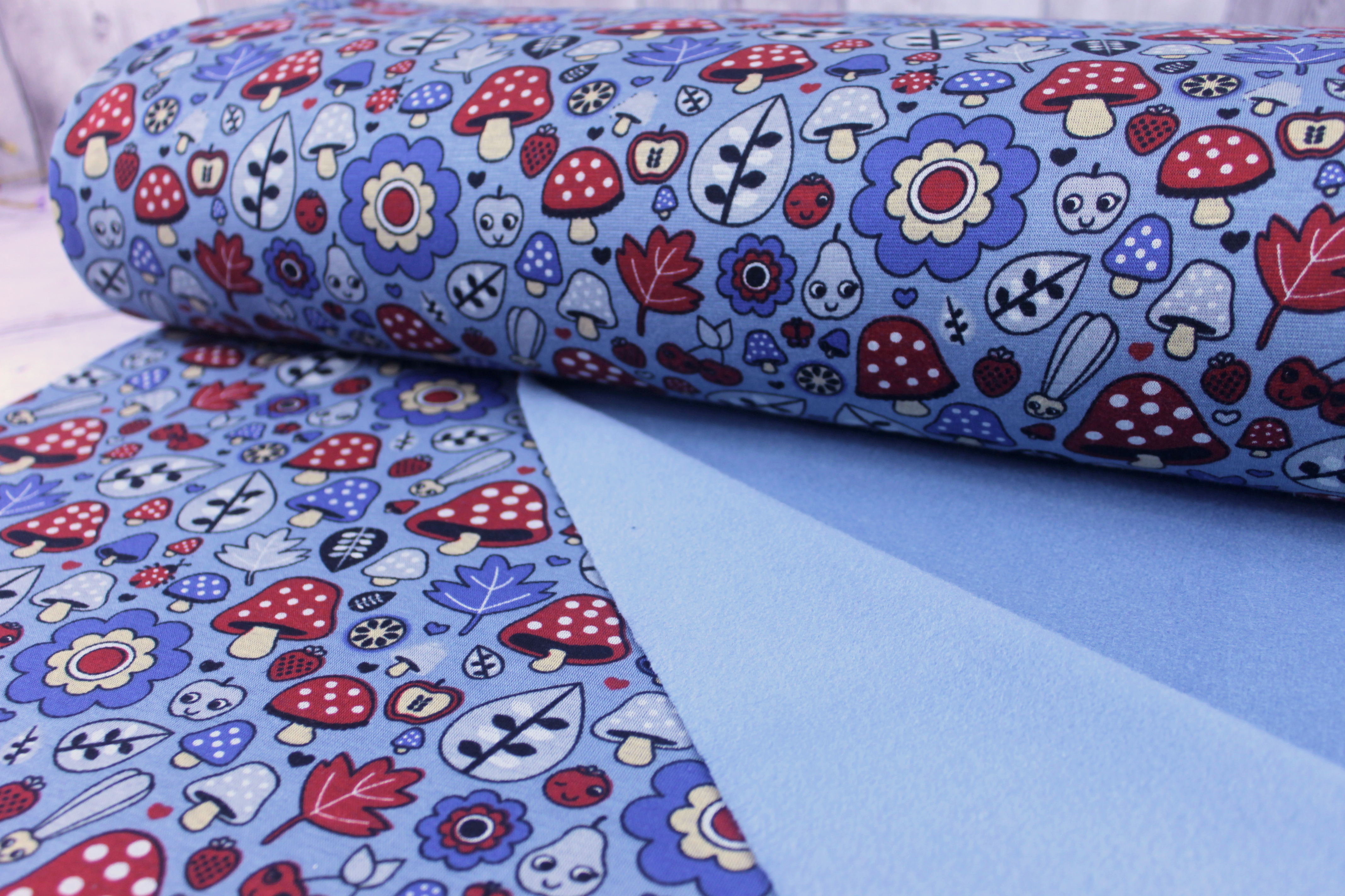 Produktinformationen "Alpenfleece | bedruckt | blue autumn | hellblau"