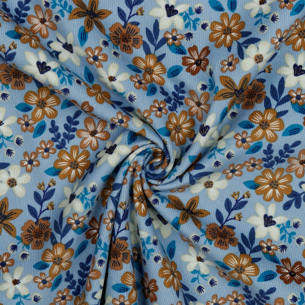 Produktinformationen "Babycord | bedruckt | Blumen Party | hellblau"