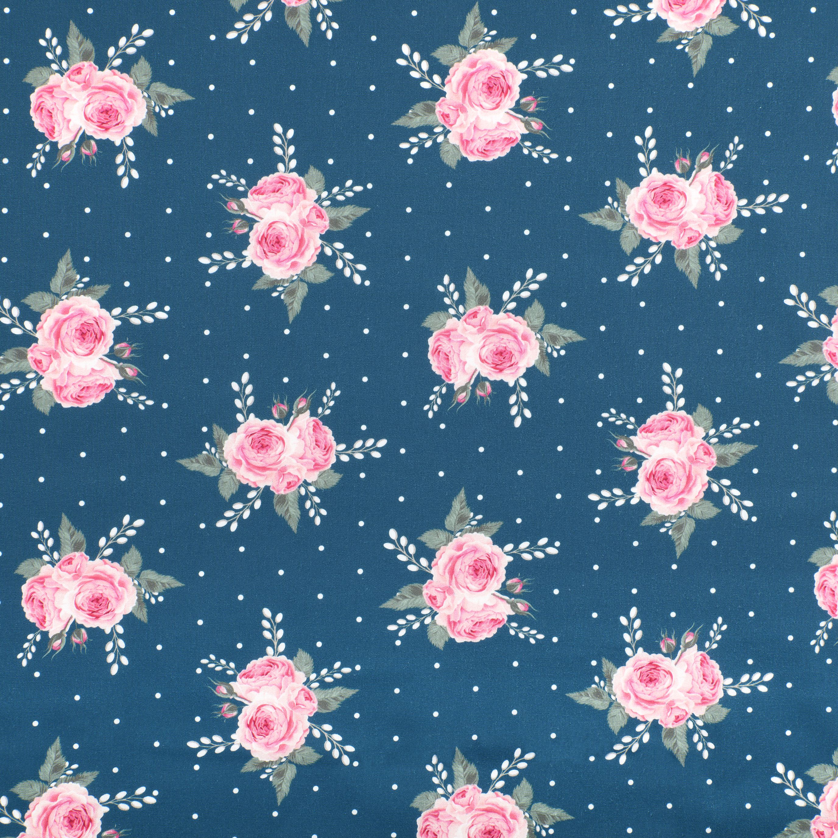 Baumwolle | bedruckt | Patchwork | Rosen | petrol