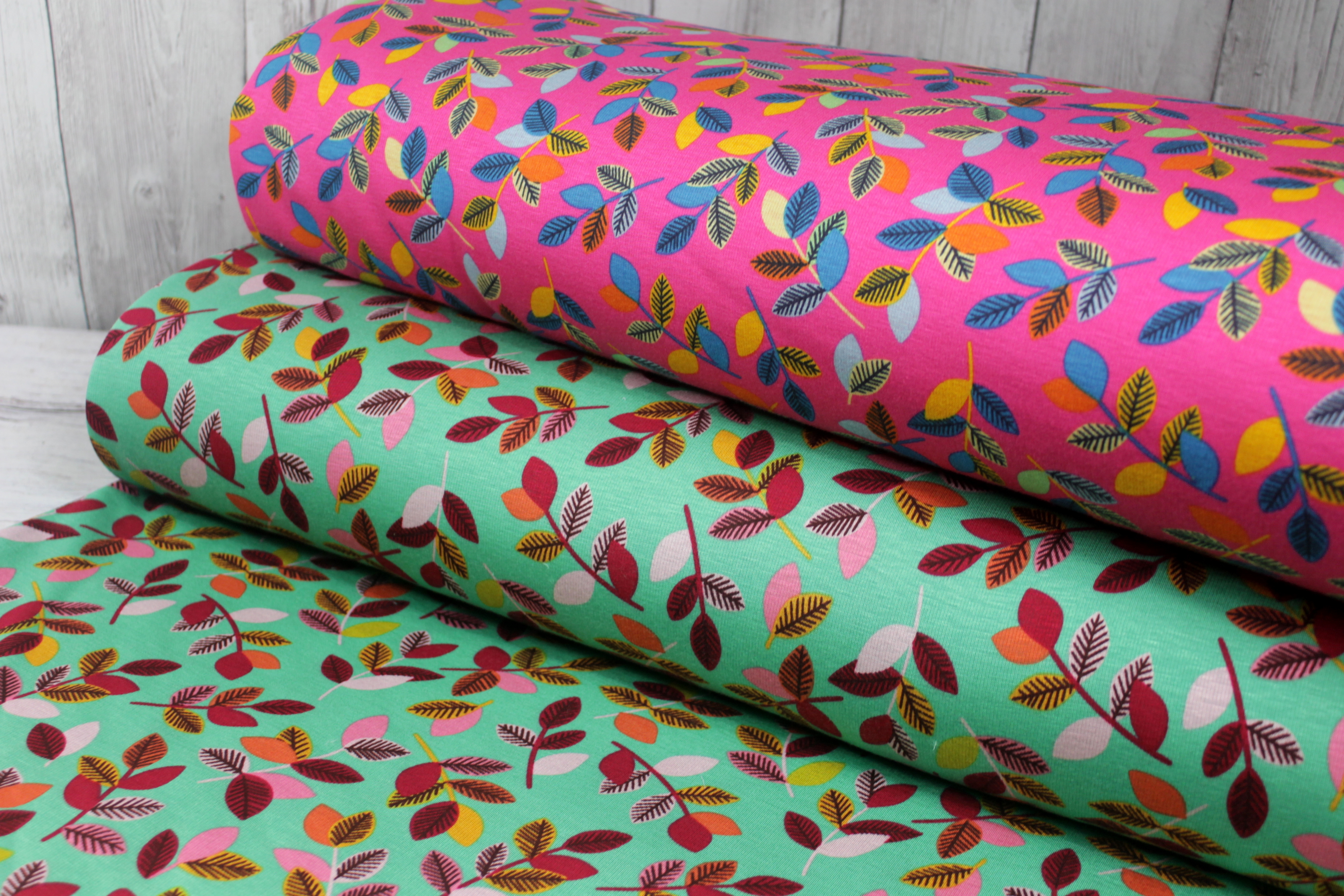 Produktinformationen "Alpenfleece | bunte Blätter | grün"