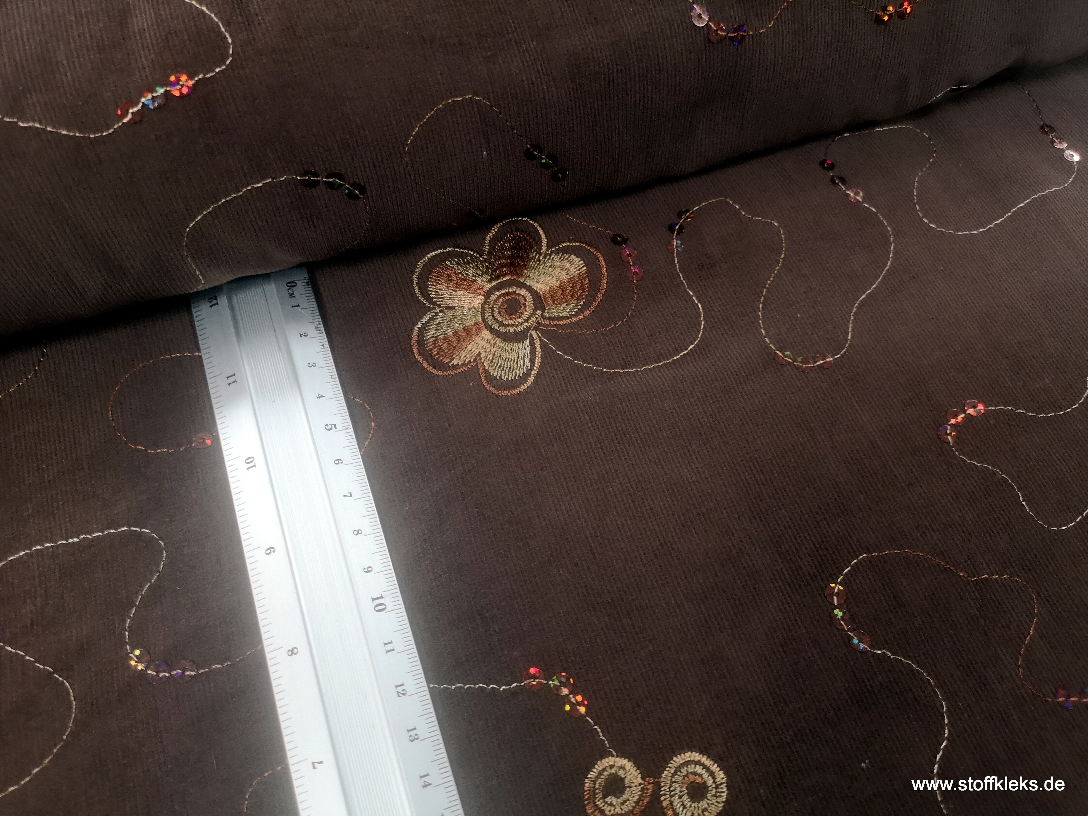 Produktinformationen "Babycord | bestickt | Blumen | zartbitter"